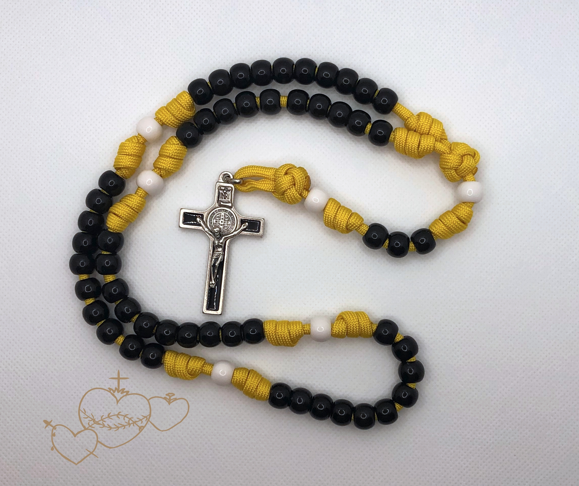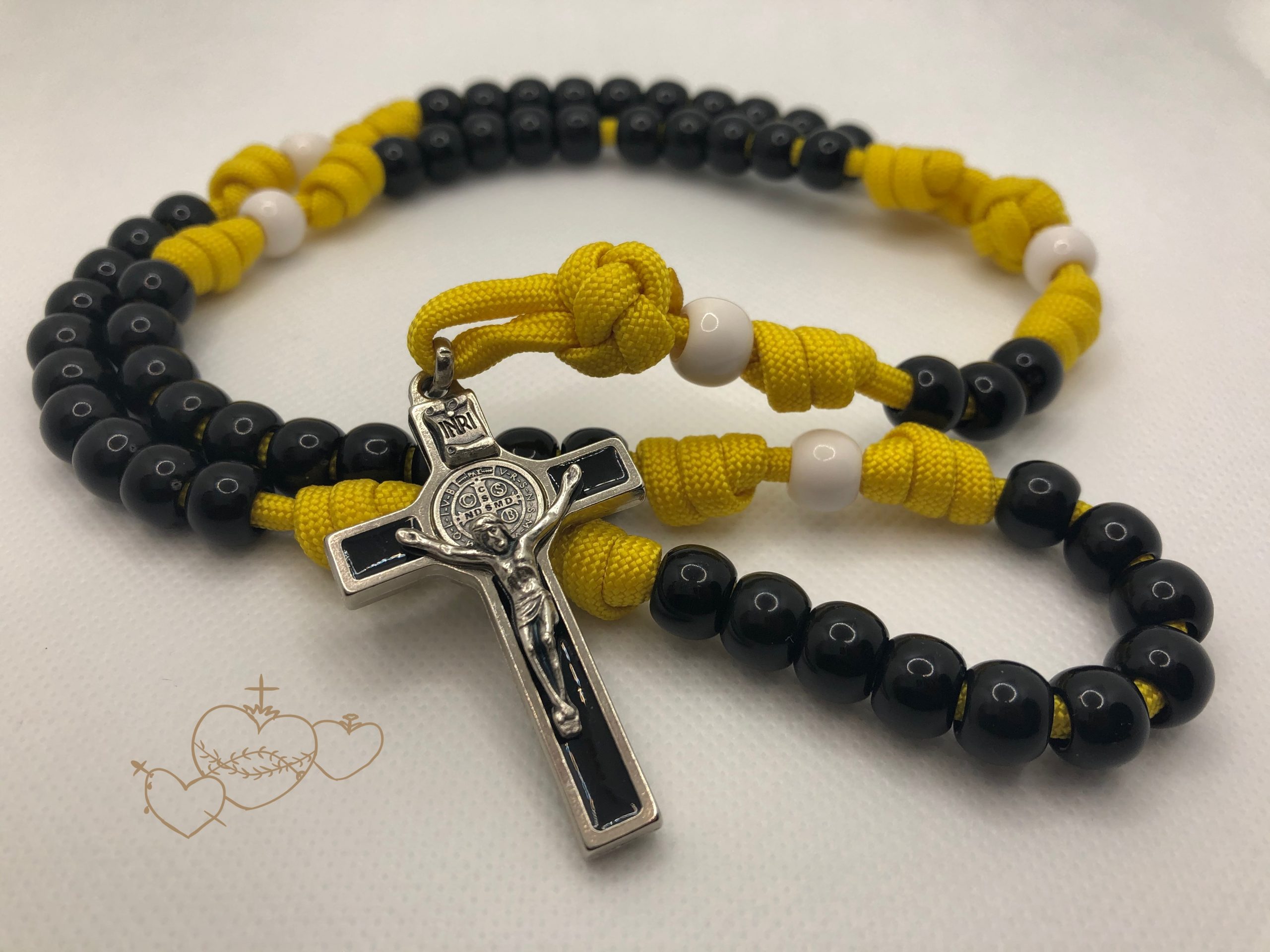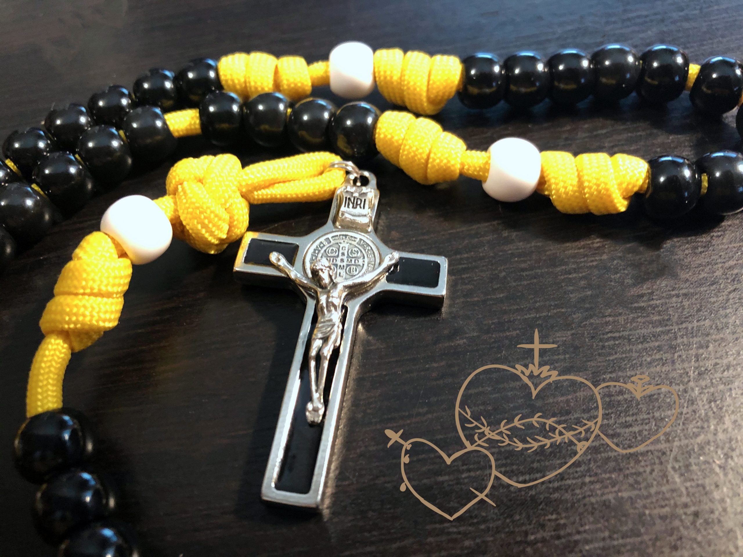 This rosary is made with 550 paracord, tough enough for any hockey fan.