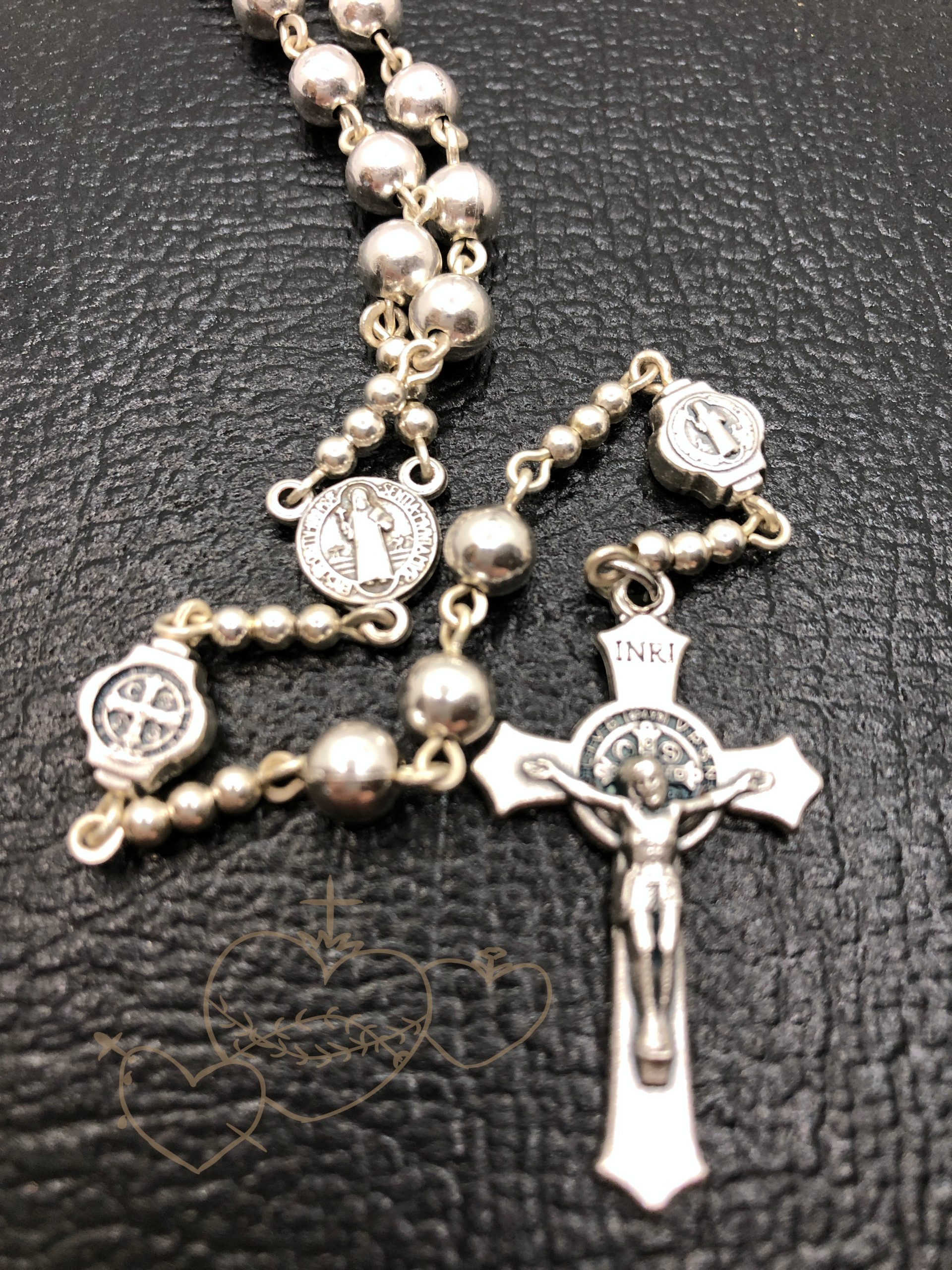Inspired by the protection provided by the St. Benedict medal we designed this rosary as the perfect pair to aid you in your spiritual battles. Being all metal, this rosary has a nice weight to it and has the look and feel of strength. Next to the Word of God the rosary is the best weapon you can carry and this rosary feels like a weapon!