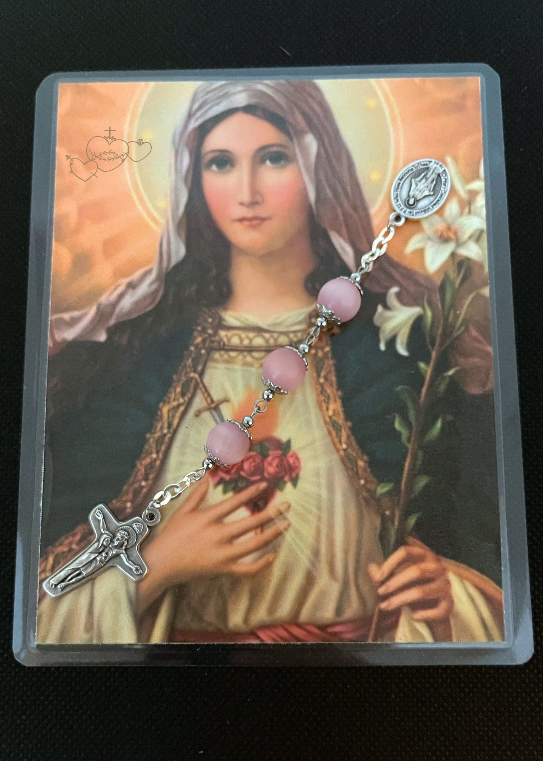 Experience a deeper connection to your daily prayer life with this elegantly handcrafted Three Hail Mary Devotion. Designed for those who practice the traditional “Three Hail Marys” prayer for purity and perseverance, this chaplet combines soft, luminous aesthetics with profound Catholic symbolism.